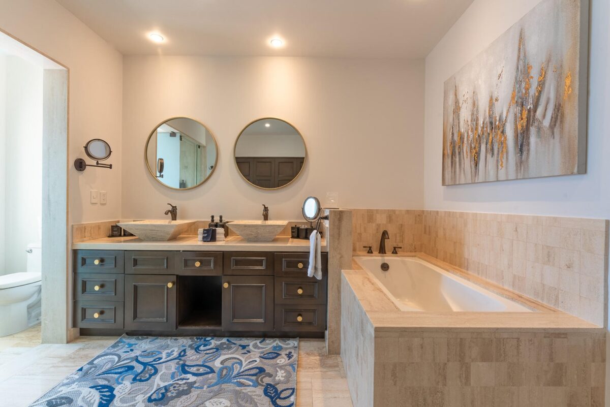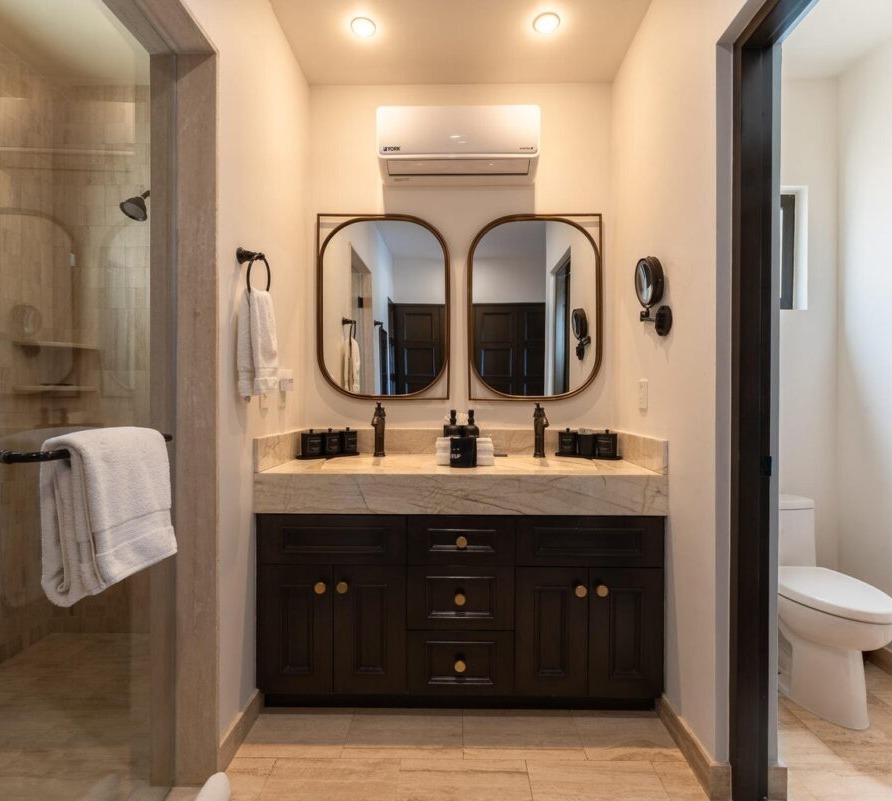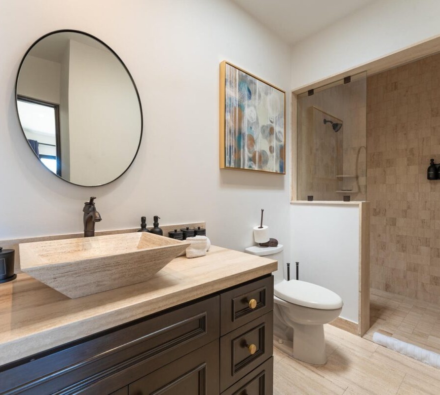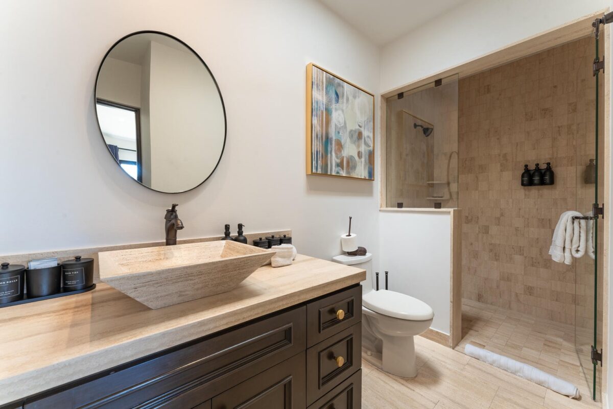 Casa de la Ballena has 4 bedrooms, each with its own attached bathroom and a 1/2 bathroom on the main level.